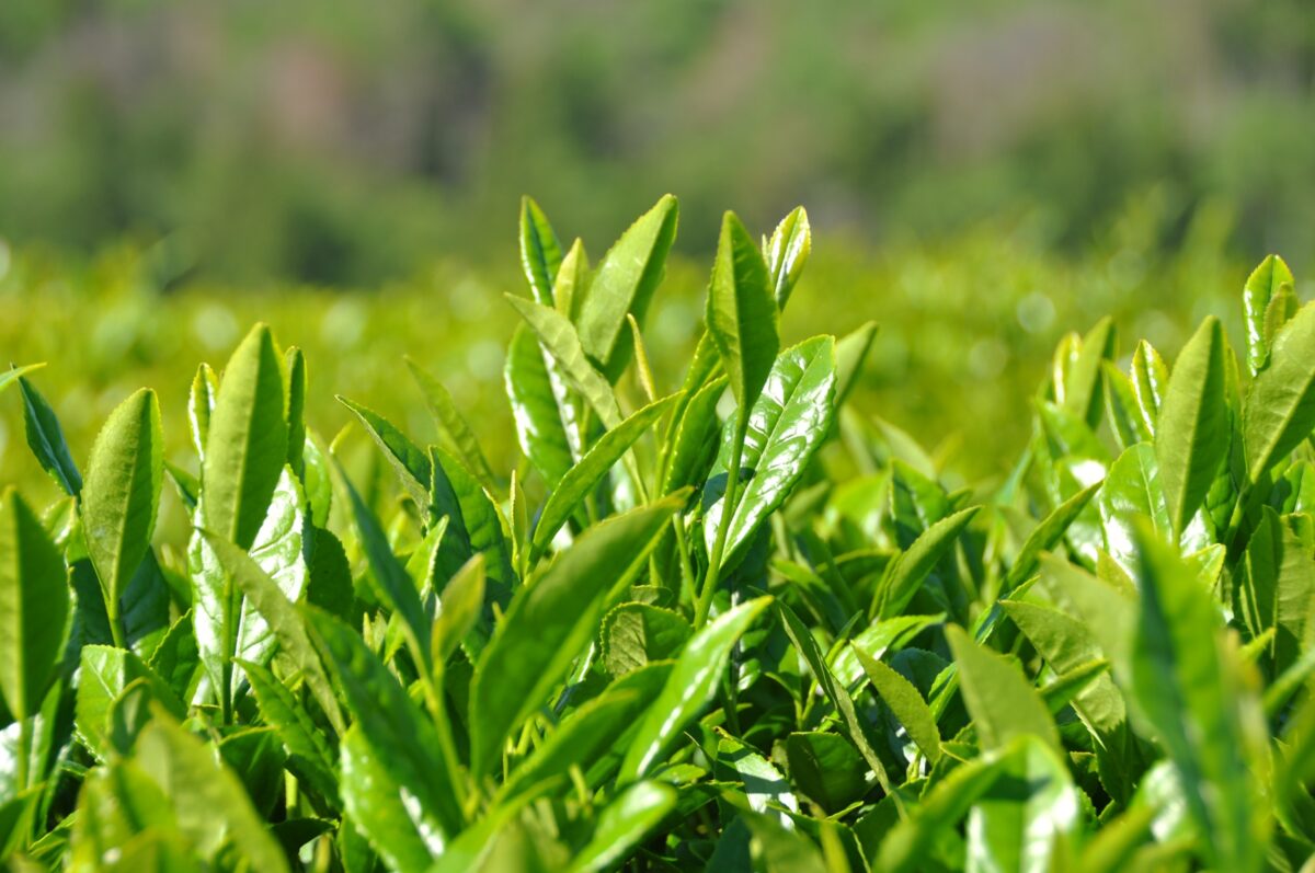 朝霧立ち込める茶畑
